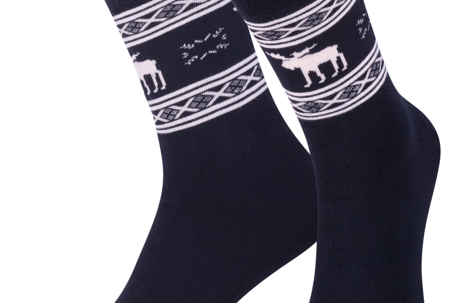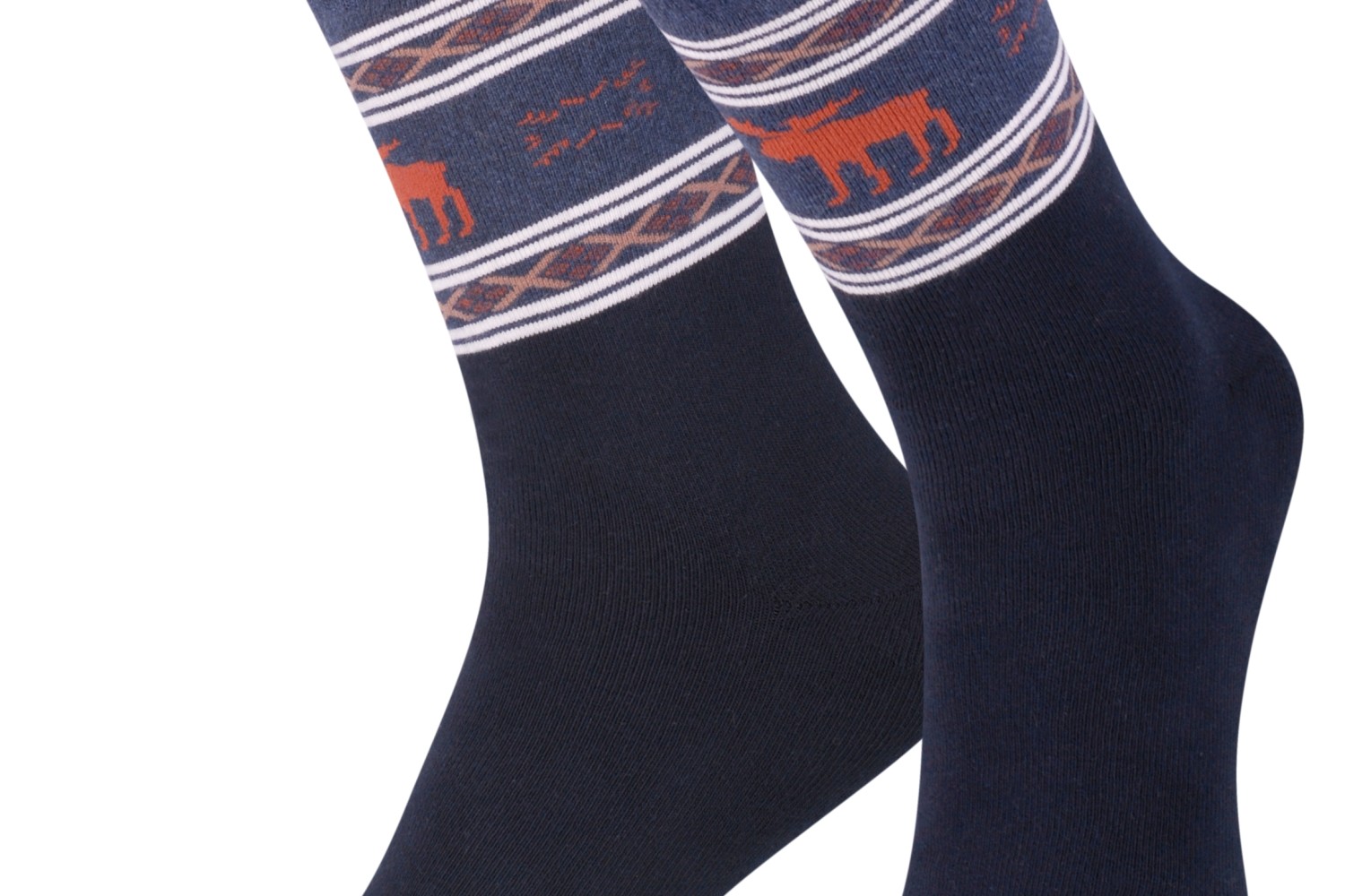 Mynstraðir þykkir sokkar fyrir herra. Bómull úr hæsta gæðaflokki. Mjúkir og hlýir. Frábærir á köldum vetrardögum.
