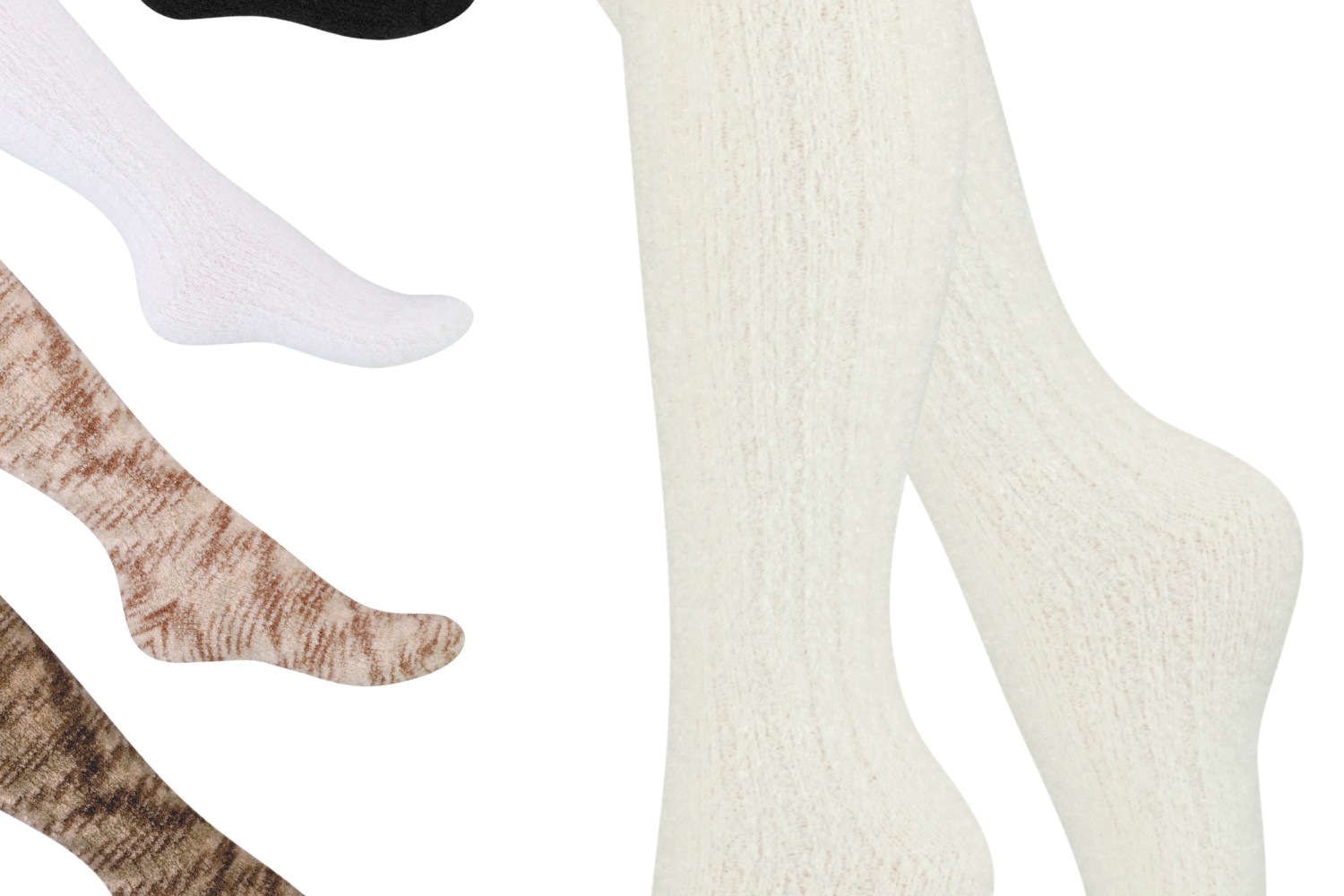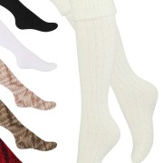 Boucle hné-sokkar með uppábroti fyrir dömur . Fást í látlausum og dökkum litum. Hlýir og mjúkir, æðislegir á köldum dögum.