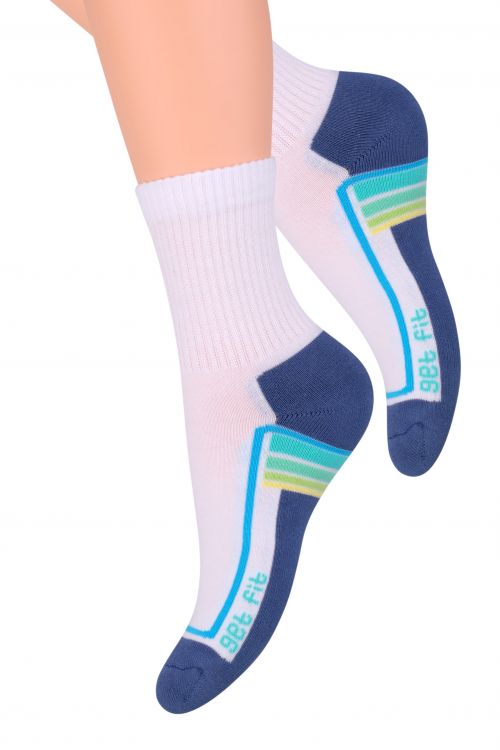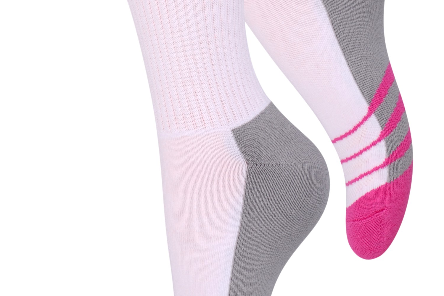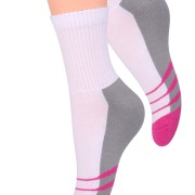 Hálf-þykkir íþróttasokkar með löngu stroffi fyrir dömur. Þykkur mjúkur botninn léttir álagi á fótunum og dregur vel í sig svita. Fást í margskonar mynstri og litum.
