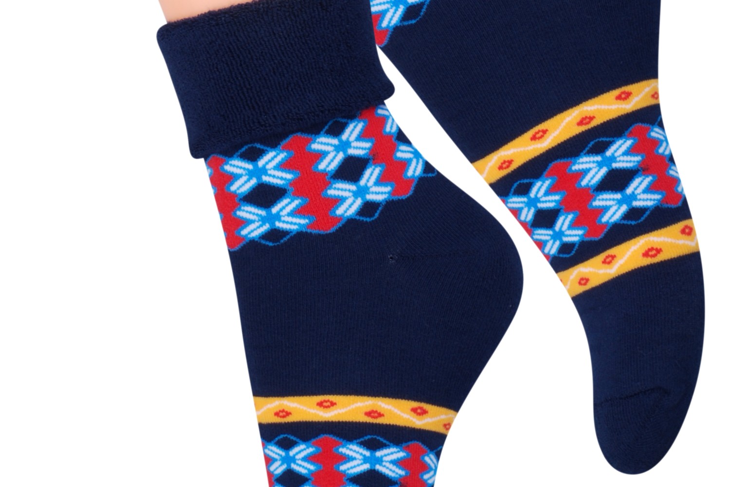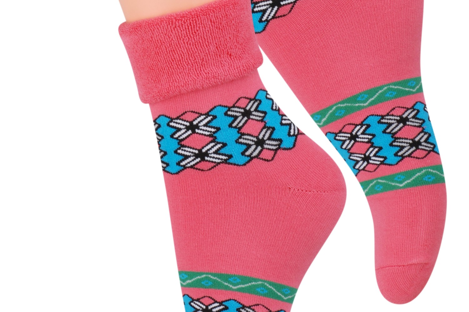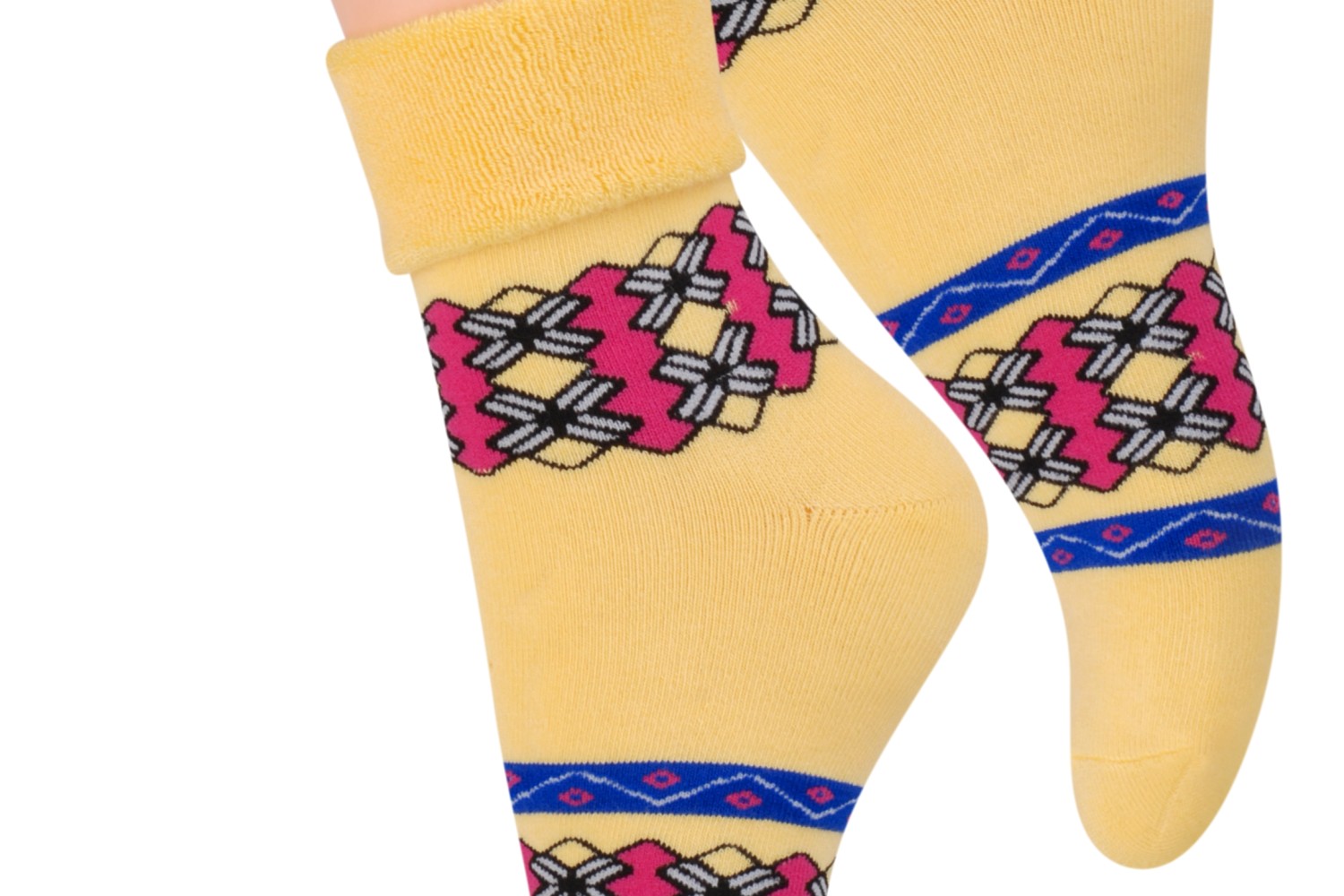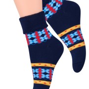 Þykkir mynstraðir sokkar með uppábroti fyrir konur. Úr hágæða bómull. Mikið litaúrval og margbreytilegt mynstur. Mjúkir og hlýir, yndislegir á köldum dögum.
